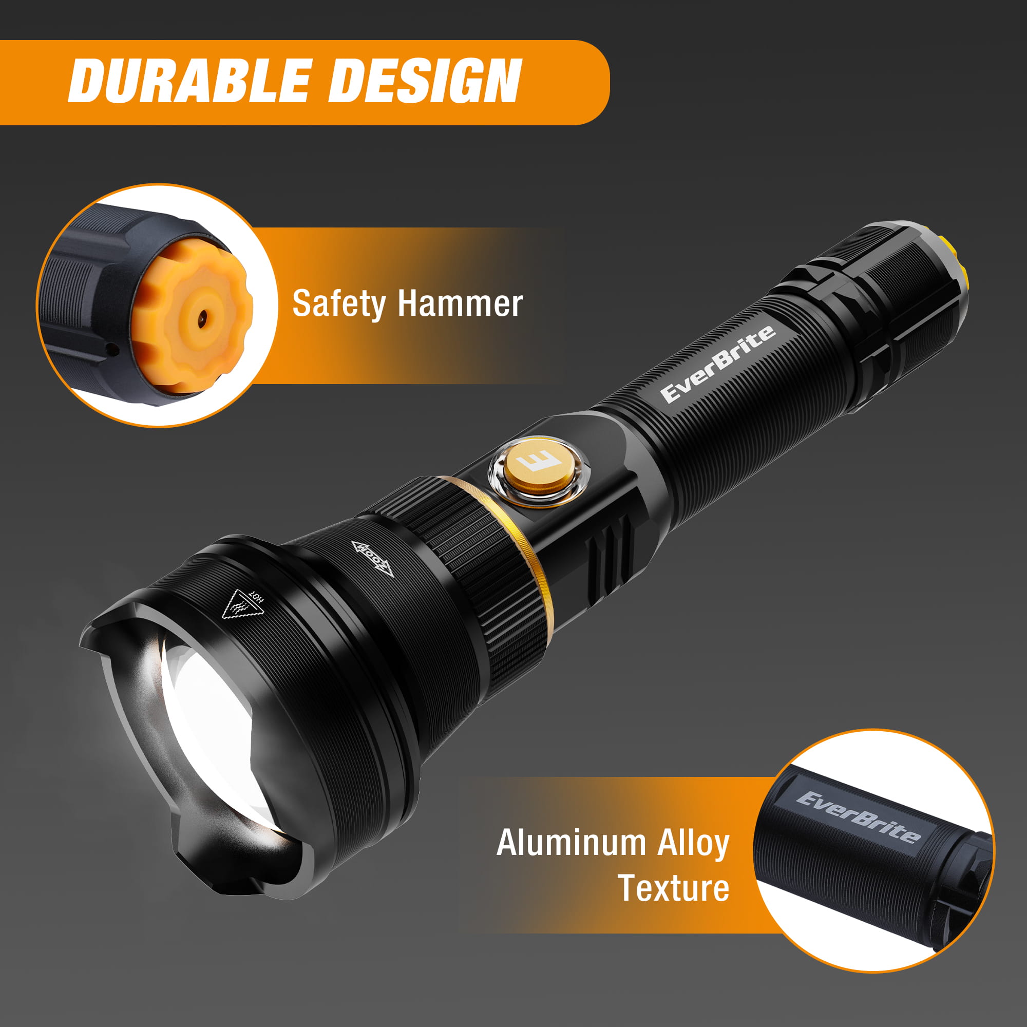 Durable & Reliable: Made with tough aluminum alloy and impact-resistant materials. Includes a safety hammer for emergencies.