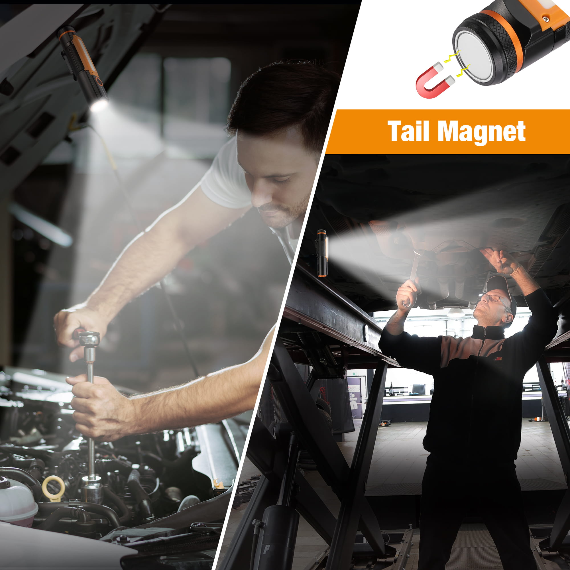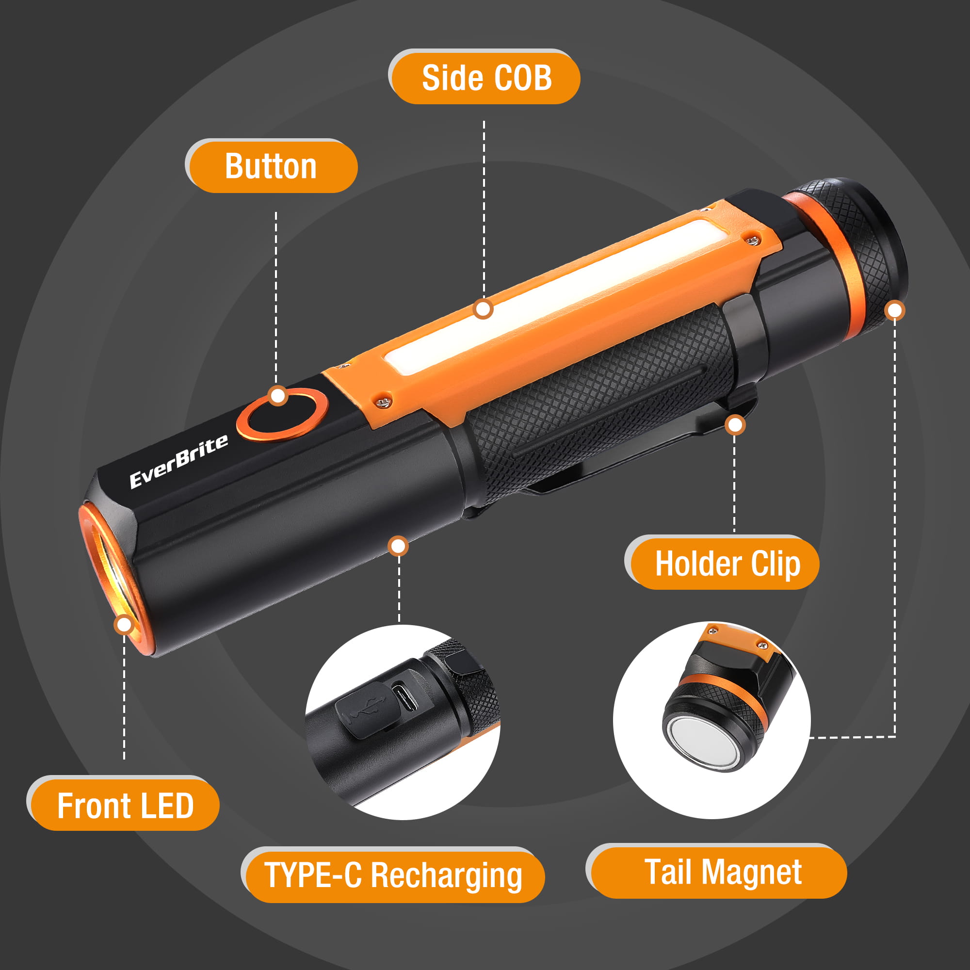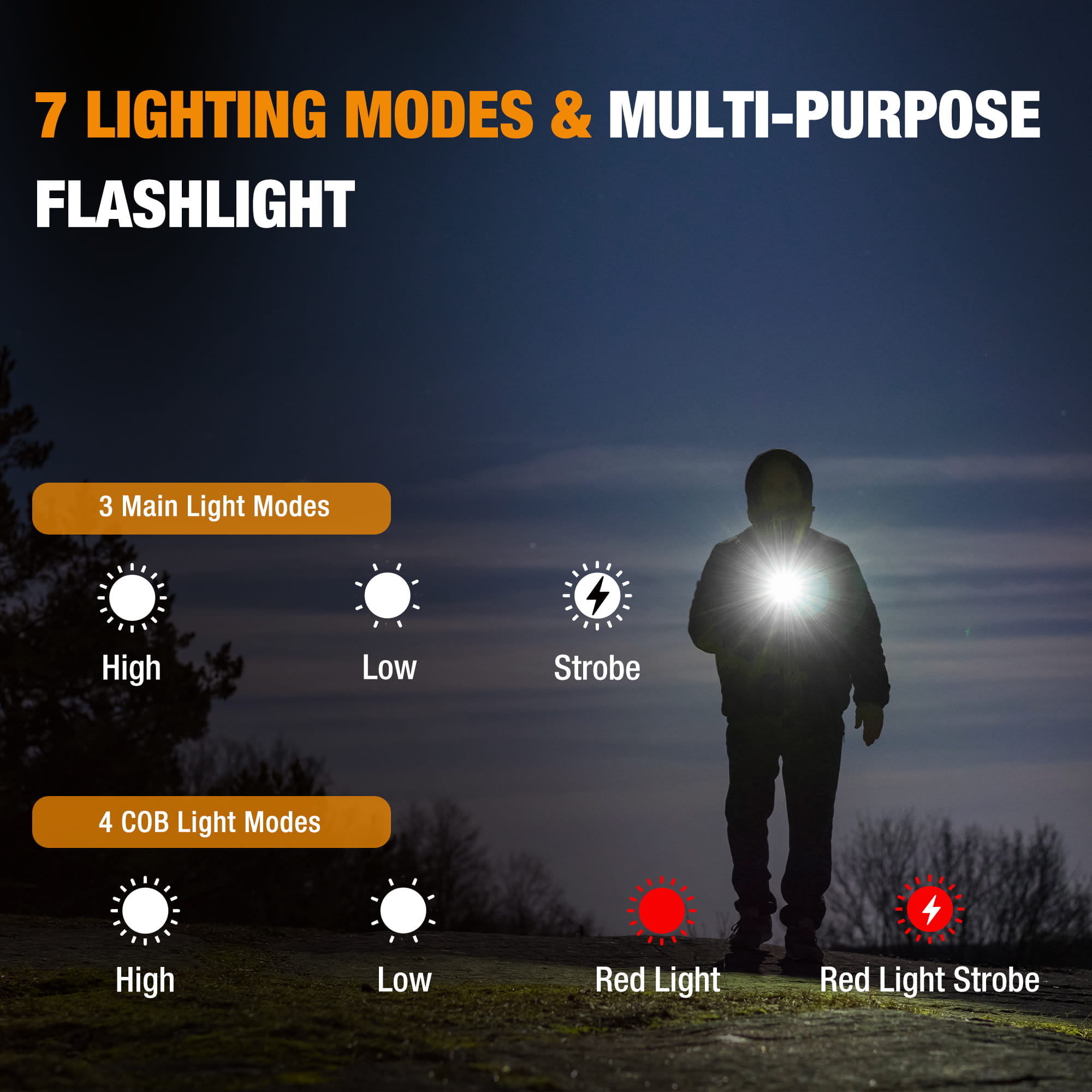 Side COB: High, low, red light, red light strobe, and OFF for versatile usage.