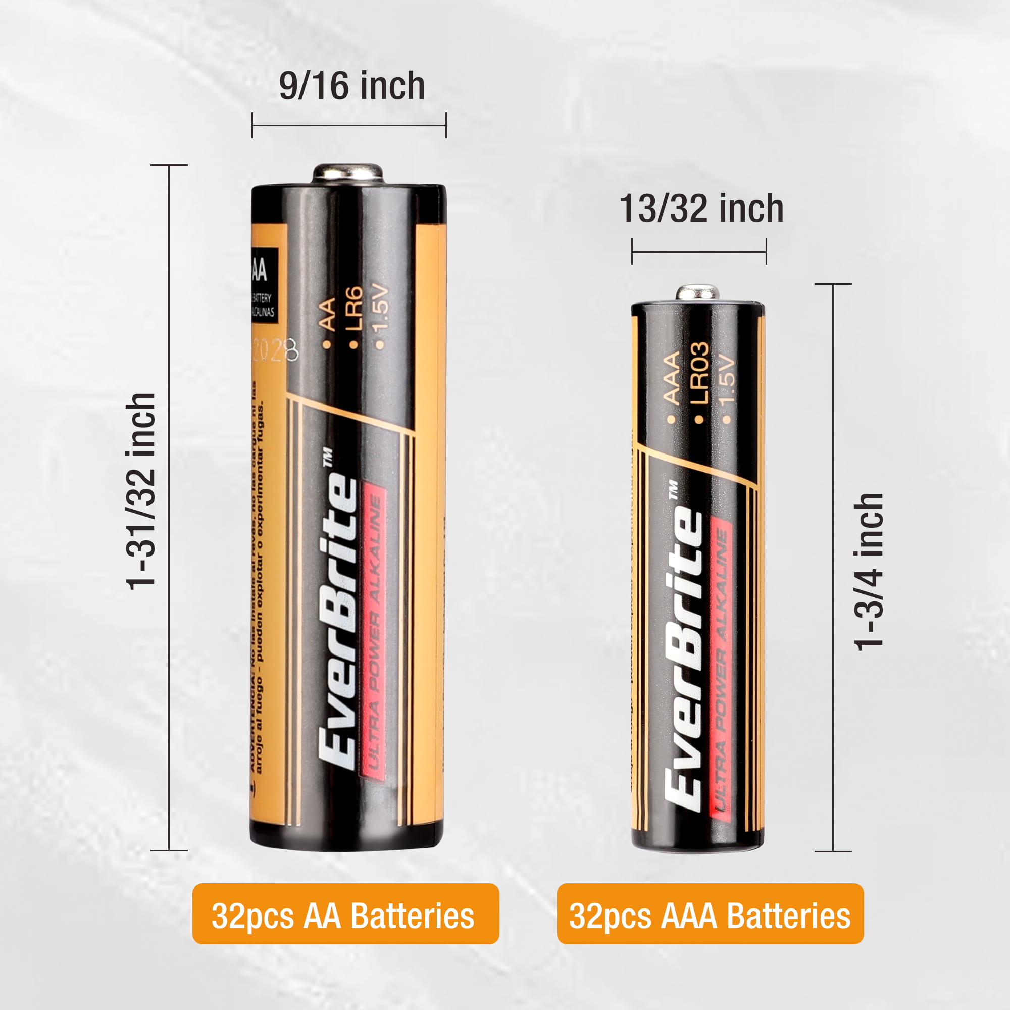 32 pcs Alkaline AAA & 32 pcs AA batteries.