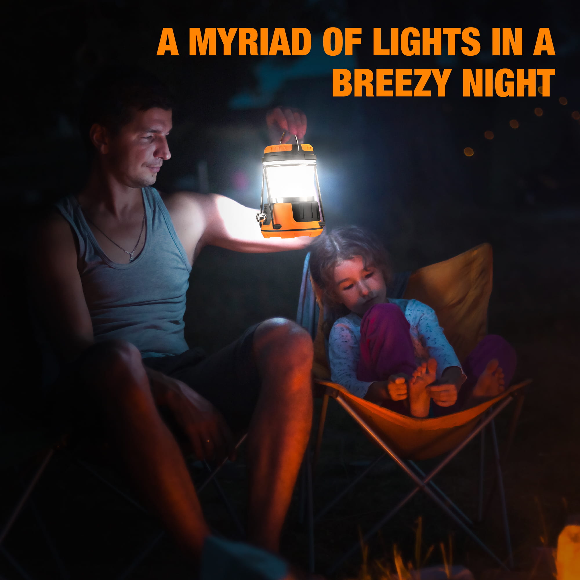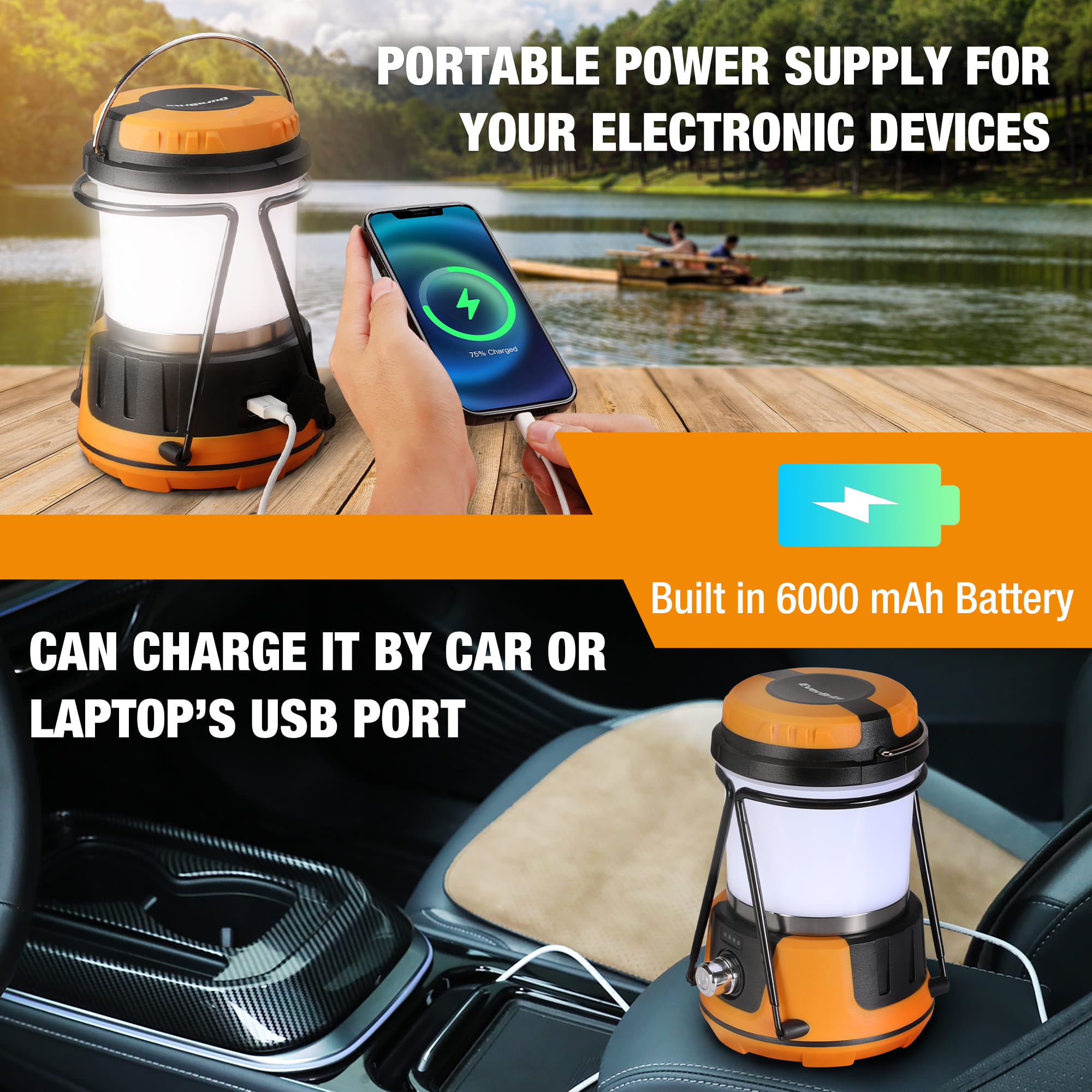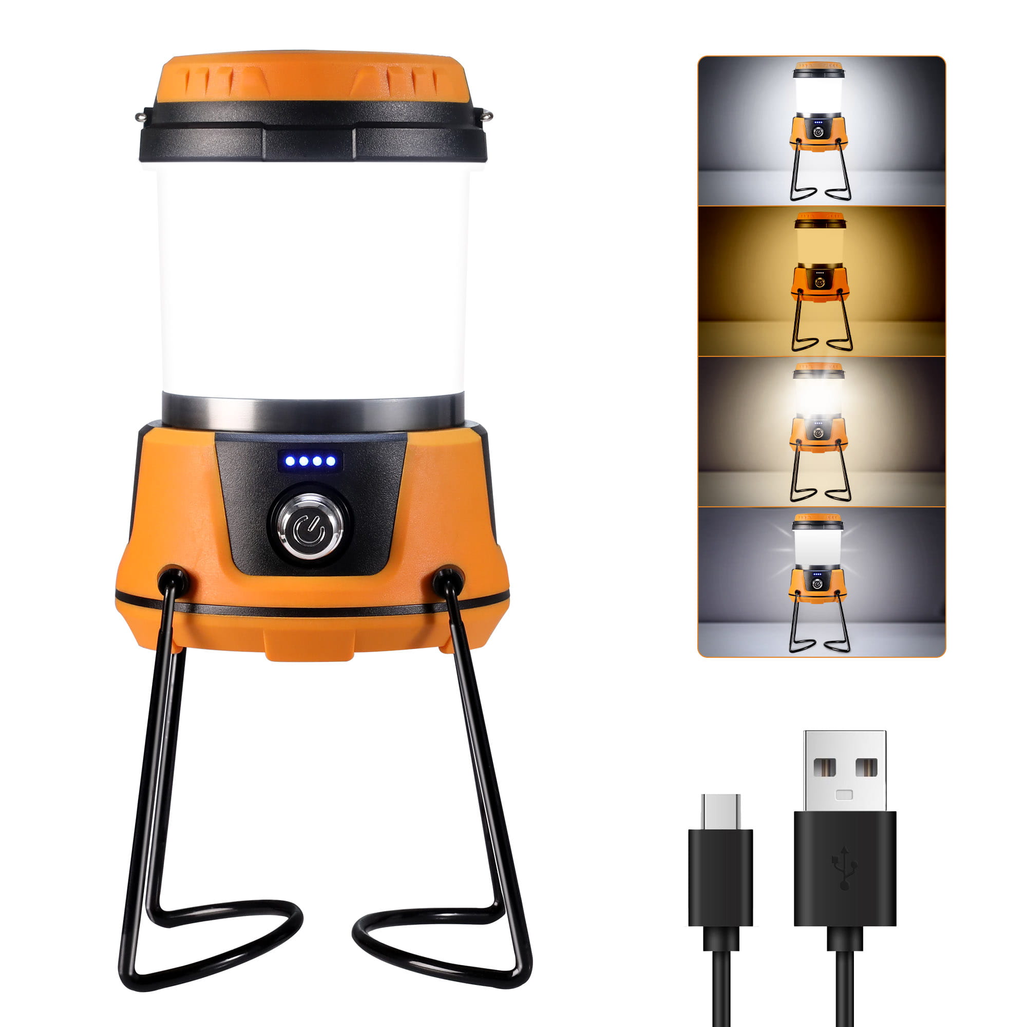 ORANGE RECHARGEABLE CAMPING LANTERN WITH BRACKET