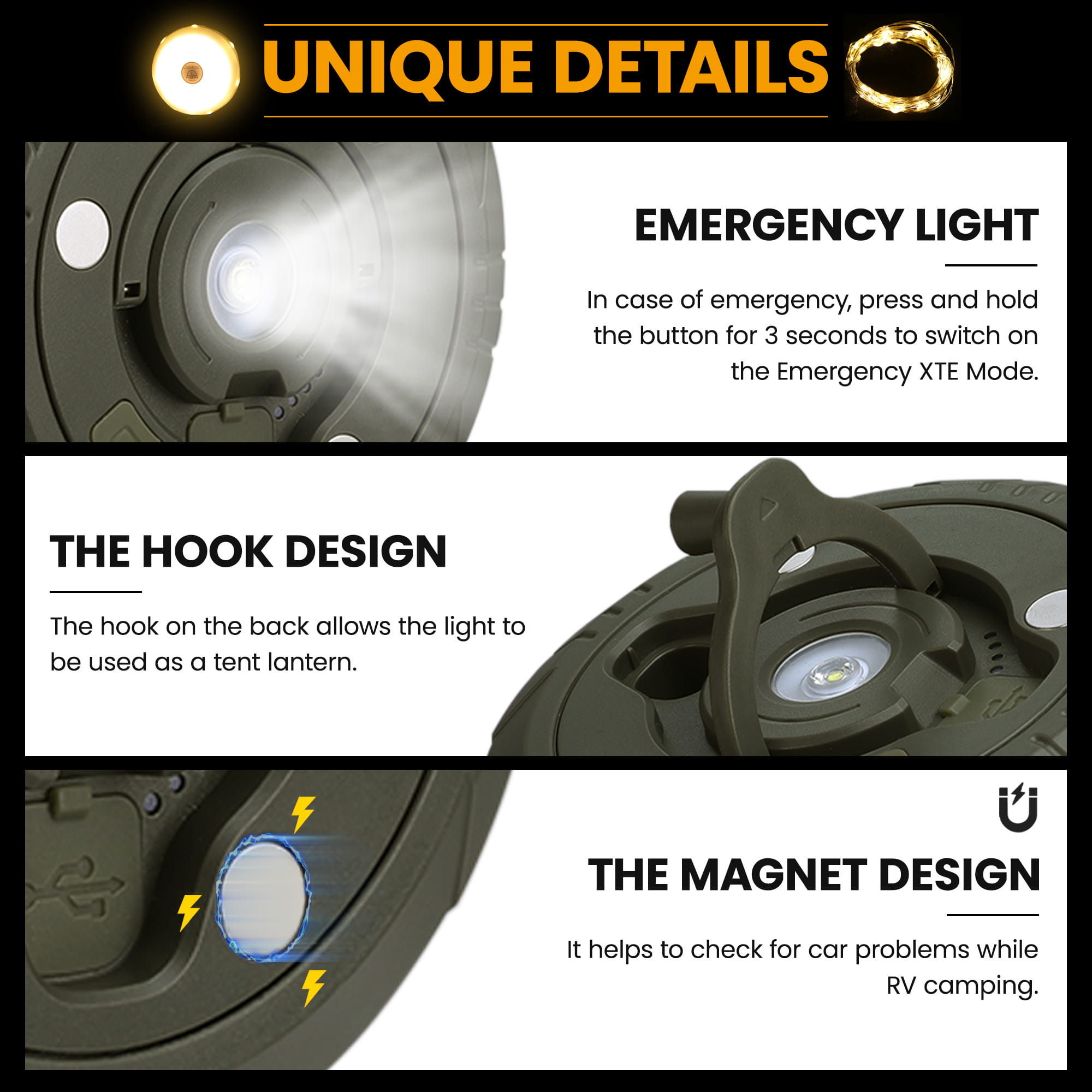 All-in-One Camping String Light: String light & primary light source for camping & emergency flashlight.
