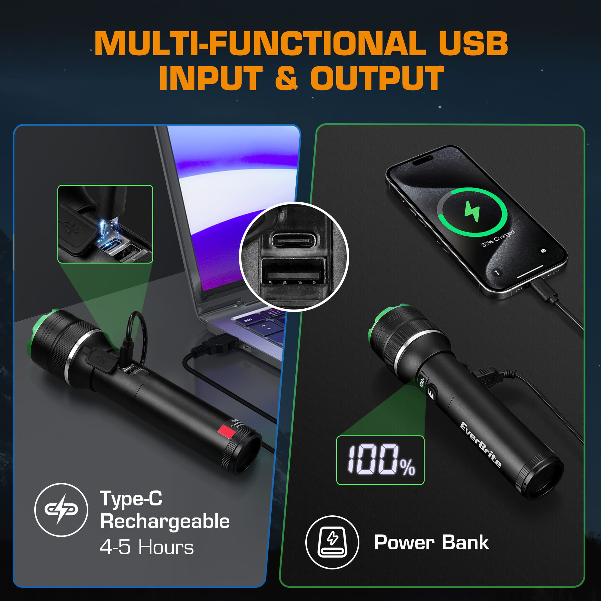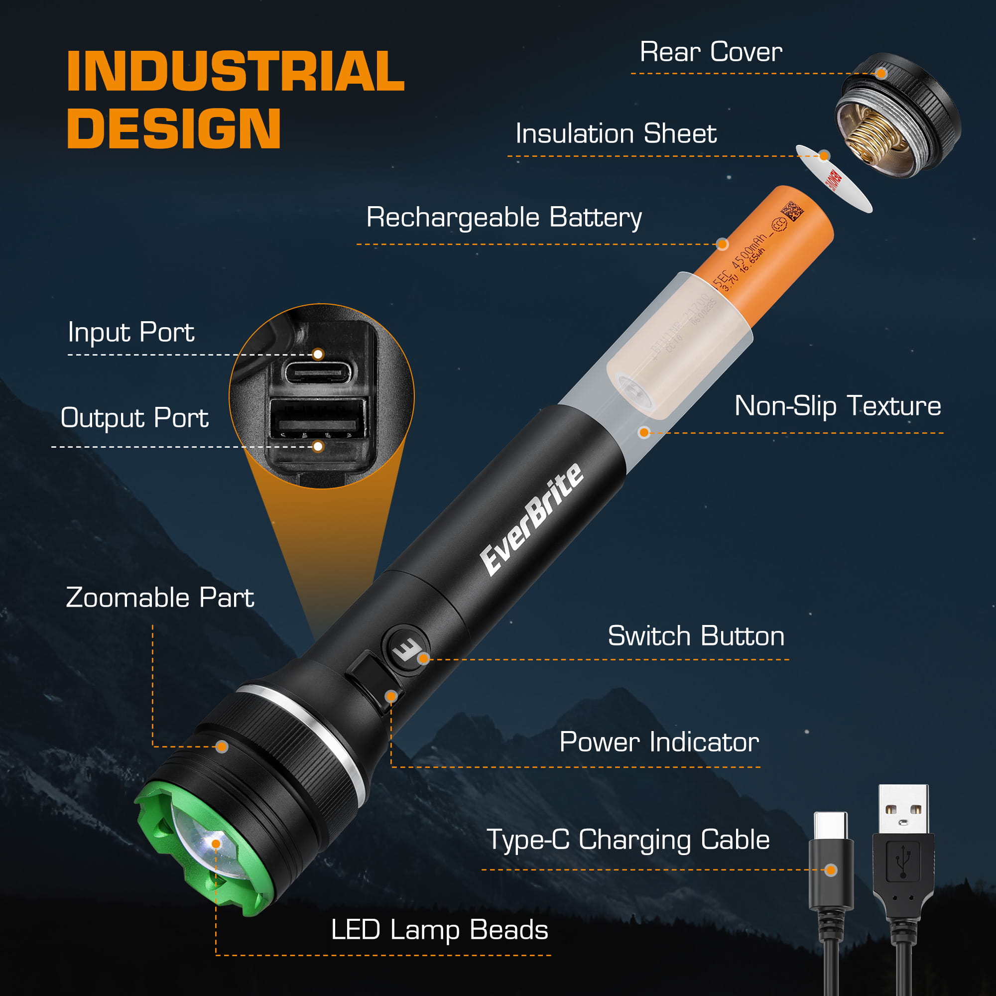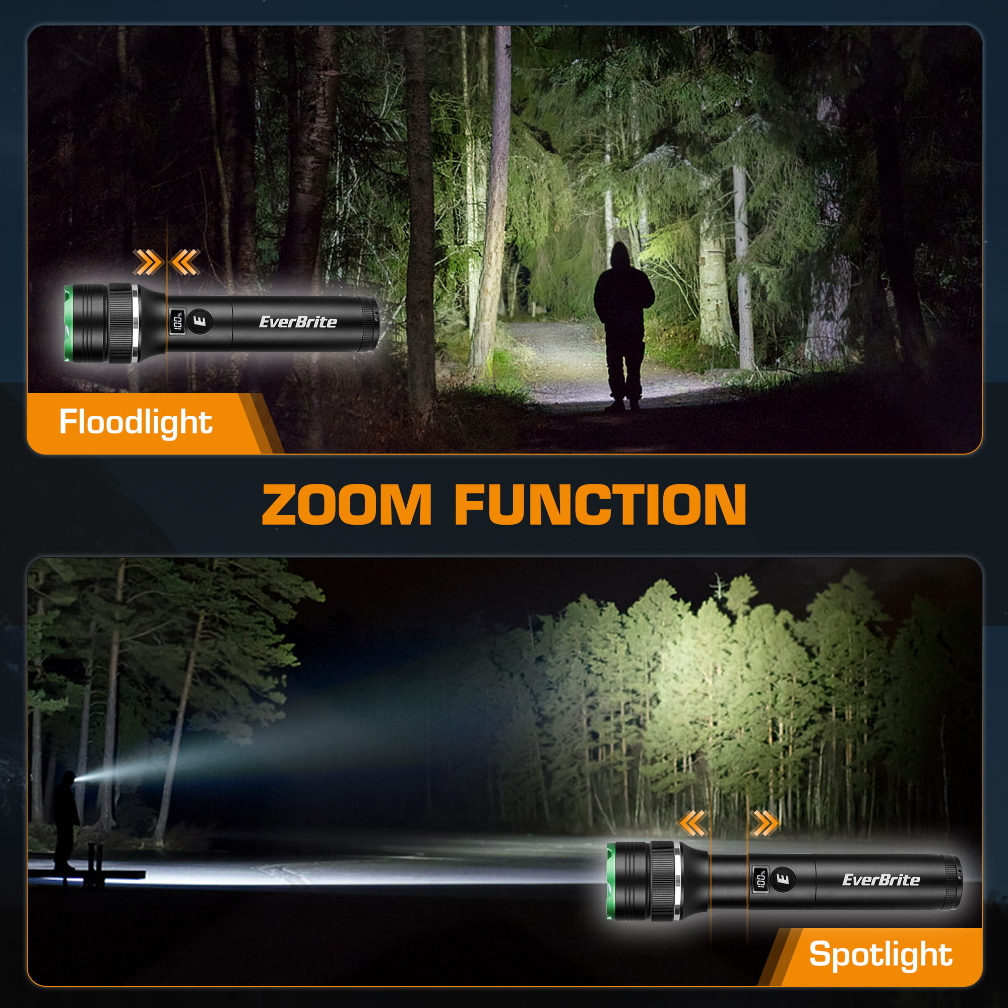 Adjustable Zoom: Twist to switch between wide floodlight and focused spotlight.