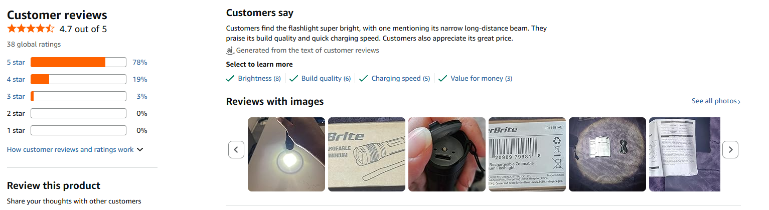 ZOOMABLE RECHARGABLE FLASHLIGHT WITH BATTERY INDICATOR