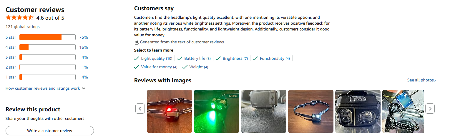 7 Modes+Turbo Boost: White low, white high, Eco, red, red flashing, green, and turbo mode.