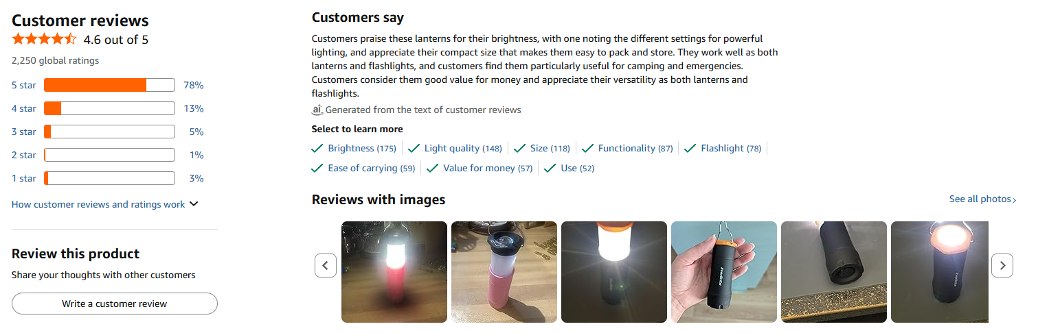Portable: The lightweight build of the lantern and the 360° light emitting design.